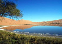 通湖草原旅游区——沙坡头的后花园、世界沙漠地质公园、中国最神奇的沙漠草原,位于宁夏和内蒙交界处的腾格里大沙漠腹地,距宁夏中